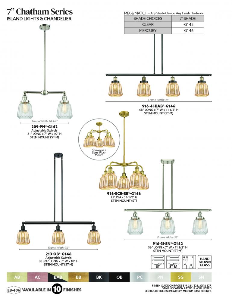 Innovations Lighting 916-4I-PC-G146 - Chatham - 4 Light - 48 inch - Polished Chrome - Stem Hung - Island Light