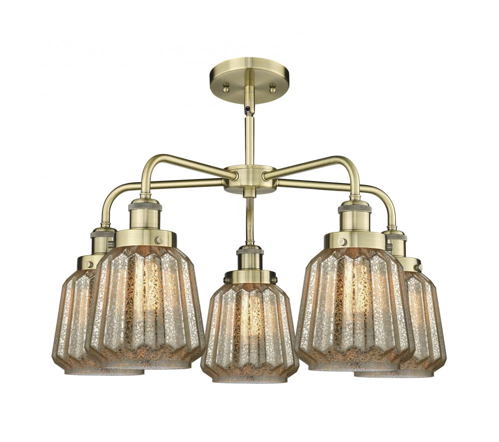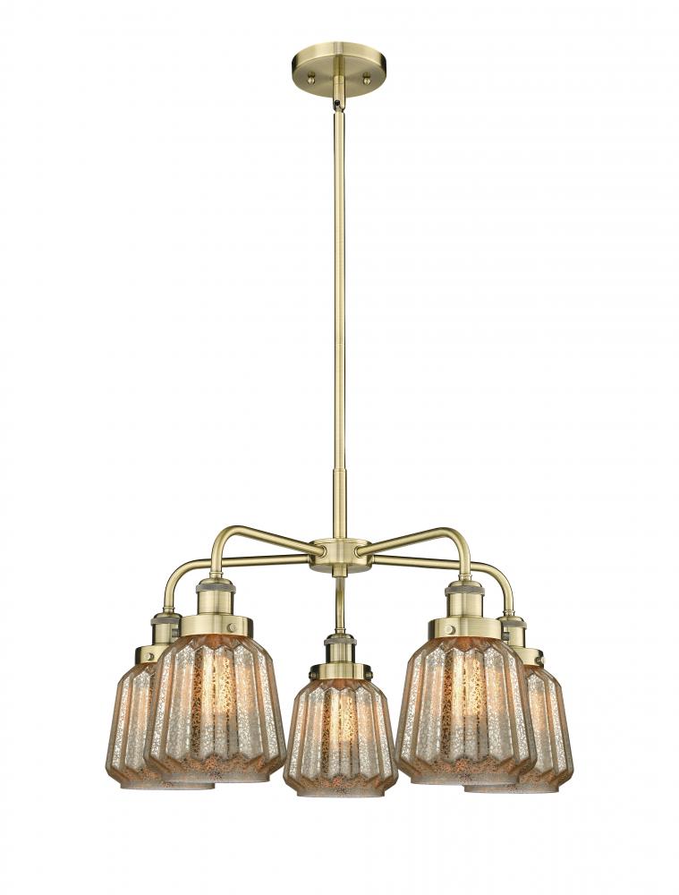 Chatham - 5 Light - 26 inch - Antique Brass - Mercury Shade - Chandelier