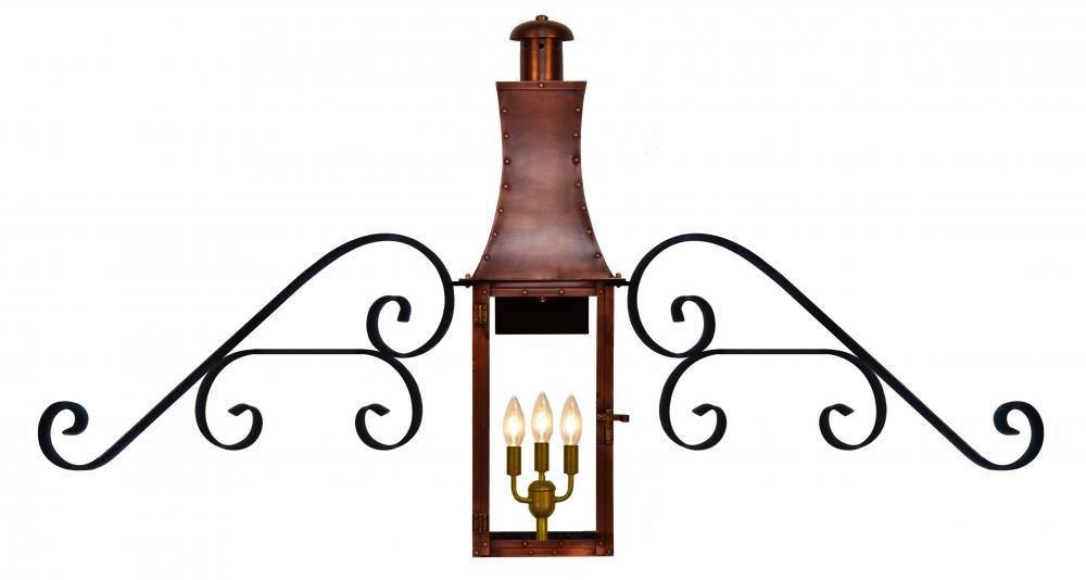 Size 38 Electric Copper Lantern, 3 candelabra base sockets, with Fancy Moustache