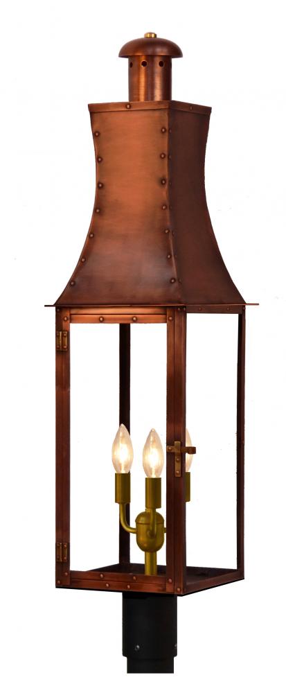 Size 38 Electric Copper Lantern, 3 candelabra base sockets, with Post Fitter