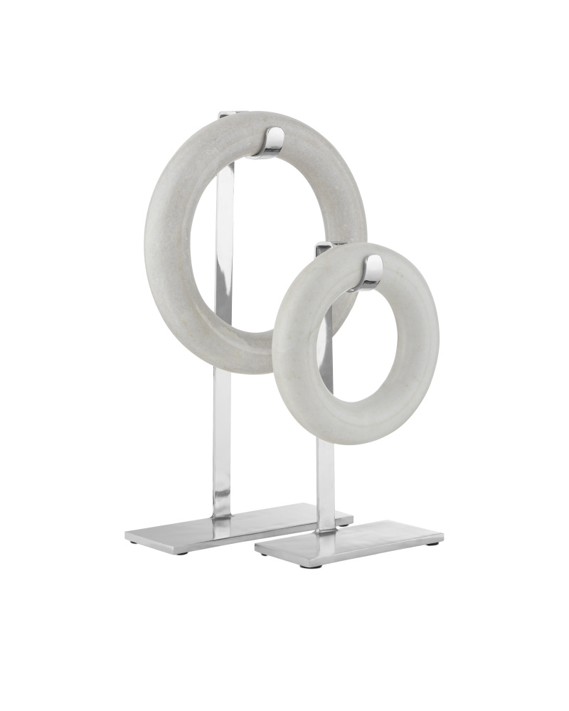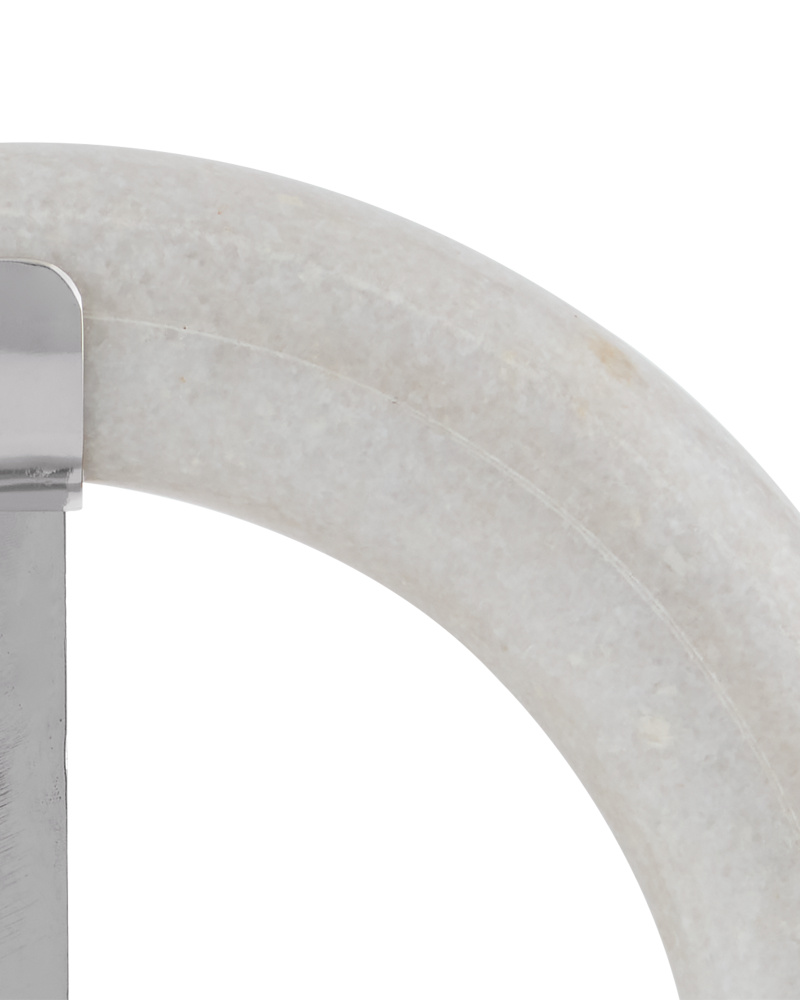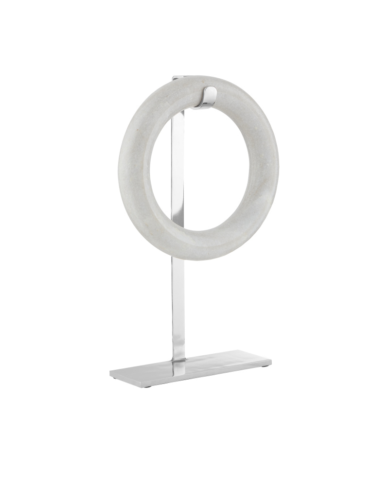 The Circle of Life Large Marble Ring is made from a single solid piece of white marble that is entirely carved and polished by hand. with white marble, life is a cycle of purity that is reflected in this piece with its modern lines enhanced by the contemporary stand in a nickel finish. This is an artisanal piece, as it takes a marble carver many hours and great skill to reach the perfection achieved.