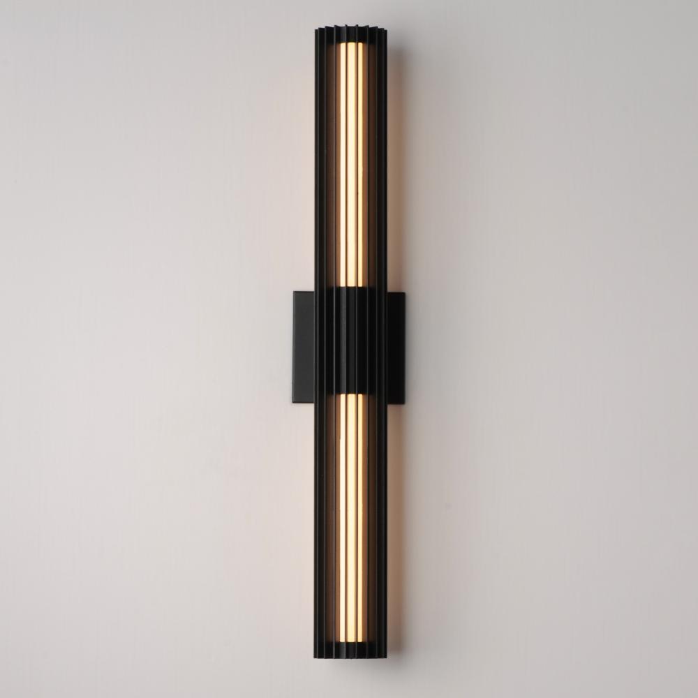 Vertical aluminum strands surround an acrylic LED tube that shines omnidirectional light filtered by the frame. The thin profile of the overall column extends less than 4" offering ADA compliant applications. Available in a variety of sconce sizes, the