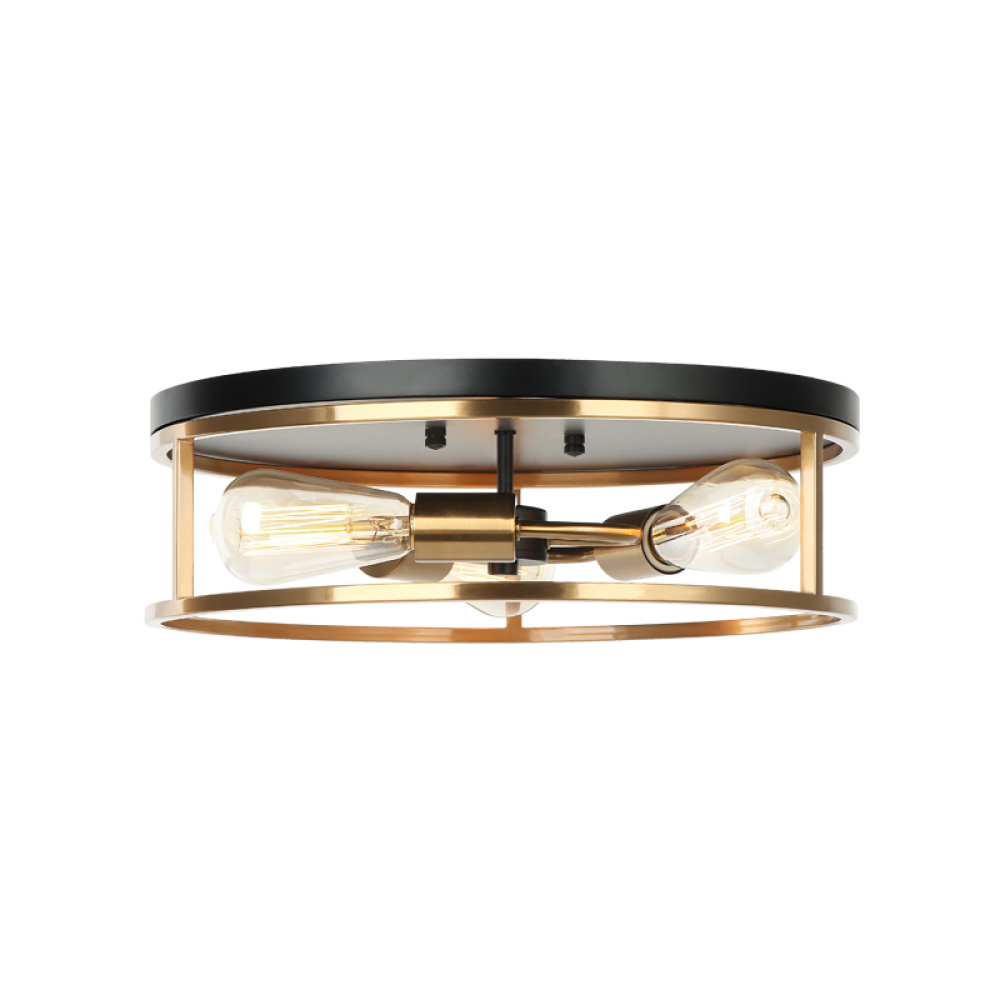 An eye-catching two-tone series with an Aged Gold Brass frame and bold Black top.The open concept maximizes the available light for a true statement piece. Clarke is available in 2 sizes in both a round and square shape.