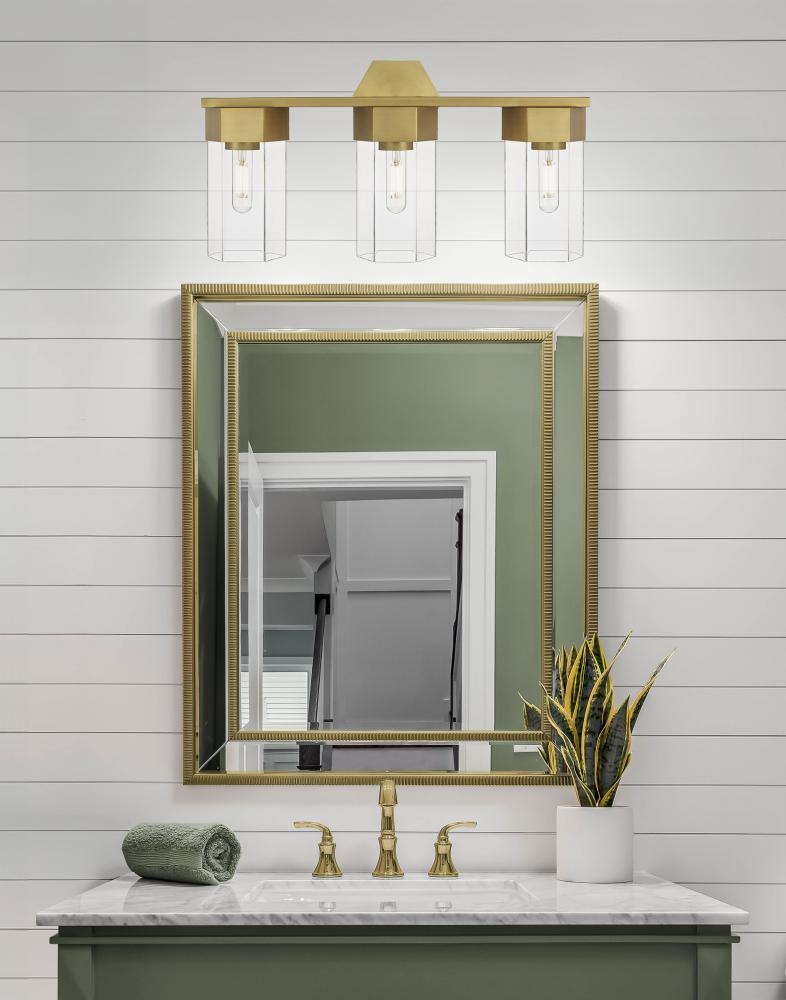 Claverack - 3 Light - 22 inch - Brushed Brass - Clear Shade - Bath Vanity Light