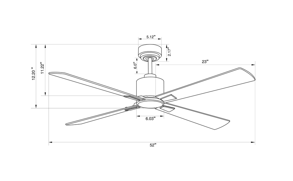 Lucci Air Climate 52-inch DC fan in Matt Black with Black Blades complete with 6 speed remote controller. Optional light kit available and sold separately. Optional 6 speed DC wall switch available and sold separately.Features:Set includes: One (1) ceiling fan with remote controlMaterial: Metal (fan housing) and Plywood (blades) Finish: BlackCeiling fan dimensions: 13 inches high x 52 inches wide x 52 inches deepBlade dimensions: 23 inches length x 5 inches width; Blade color: BlackSummer/Winter mode: YesMotor size (inch): D5 x 1.18Airflow(CFM): 5381.81Number of speed: 6Power Consumption Average(wattage): 35Motor Wattage: 35WNon DimmableRPM H/M/L (motor speed): 191/162/134/106/78/51Fan Watts when used at high speed: 35WVoltage: 120Vac, 60HzThis product will ship to you in one (1) box.Accessories pictured are NOT included.Assembly required.