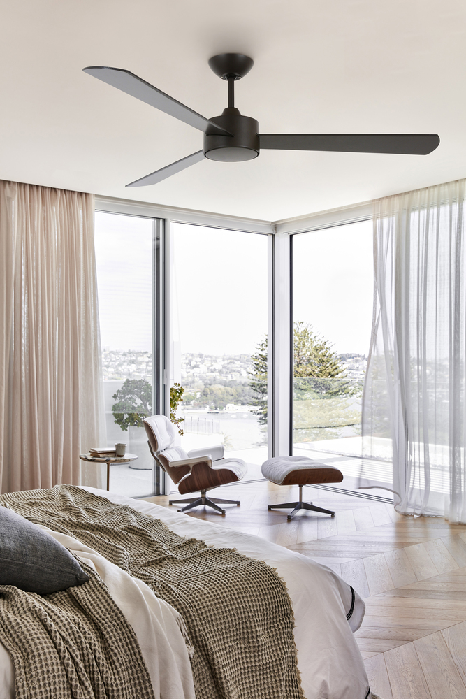 Lucci Air Climate III 3 Blade 52 inch DC fan in Oil Rubbed Bronze with reversible Walnut/Dark Koa blades, complete with 6-speed remote control. Optional light kit sold separately (21064301). The Lucci Air Climate III is a DC (direct current) ceiling fan that uses approximately 40% less electricity while producing high airflow and silent motor operation. The Lucci Air Climate III is only operational via the included 6-speed remote control, which includes a convenient wall holster. You will never lose your remote again. Winter/Summer mode allows for added comfort all year long. The simplicity in design and 2 looks with reversible blades gives this fan a designer appeal. Being an indoor only fan, the Climate III would be perfect to use in a medium to large size bedroom.Features:Set includes: One (1) ceiling fan with remote controlMaterial: Metal (fan housing) and Plywood (blades)Finish: Oil Rubbed Bronze and Dark KoaCeiling fan dimensions: 12 inches high x 52 inches wide x 52 inches deepBlade dimensions: 24 inches length x 6.5 inches width; Blade color: Walnut and Dark KoaSummer/Winter mode: YesMotor size (inch): 5Airflow(CFM): 4638.22Number of speed: 6Power Consumption Average(wattage): 30Motor Wattage: 35WSocket: GX53RPM H/M/L (motor speed): 112/131/161/177/206/238Fan Watts when used at high speed: 35WVoltage: 120Vac, 60HzThis product will ship to you in one (1) box.Accessories pictured are NOT included.Assembly required.