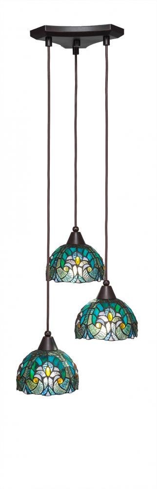 Toltec Lighting 28-DG-9925 Europa 3 Light Cord Cluster Pendalier Shown In Dark Granite Finish With 7 Turquoise Cypress Art Glass