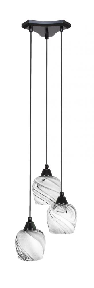 Europa 3 Light Cluster Pendalier Shown In Matte Black Finish With 6 Onyx Swirl Glass