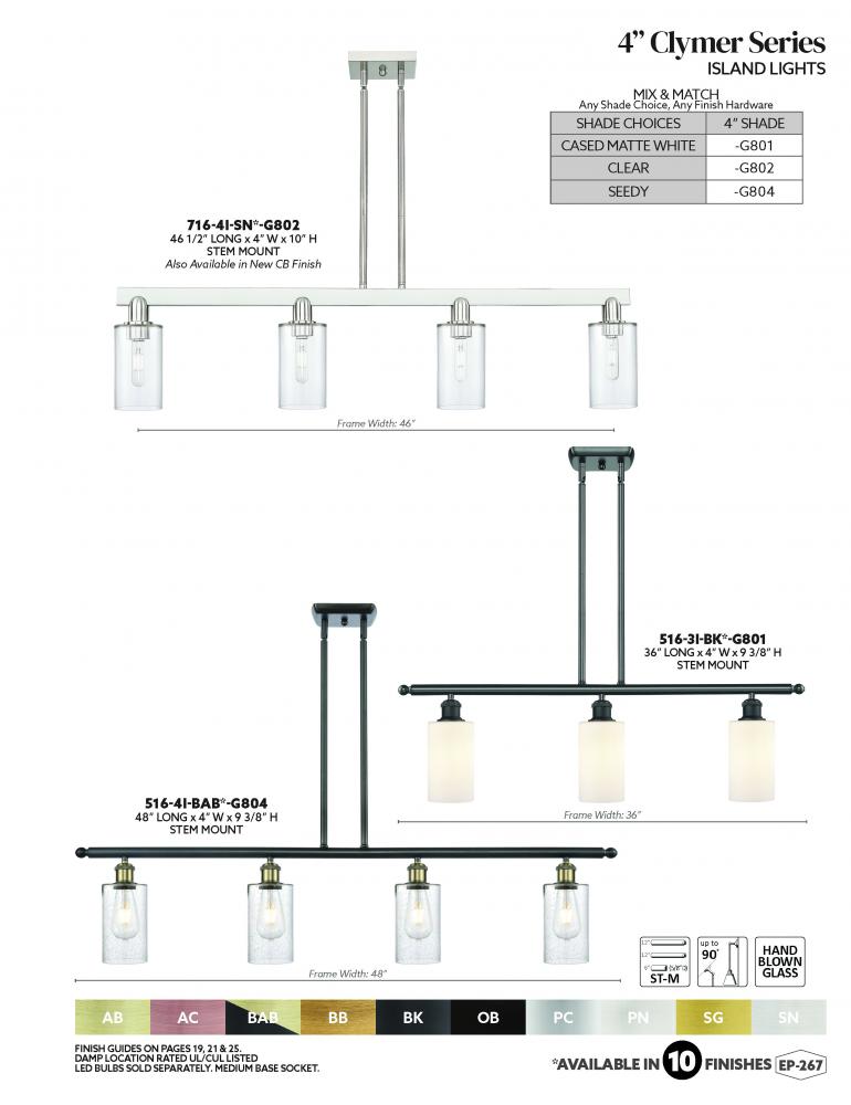 Innovations Lighting 516-4I-AC-G801-LED - Clymer - 4 Light - 48 inch - Antique Copper - Stem hung - Island Light