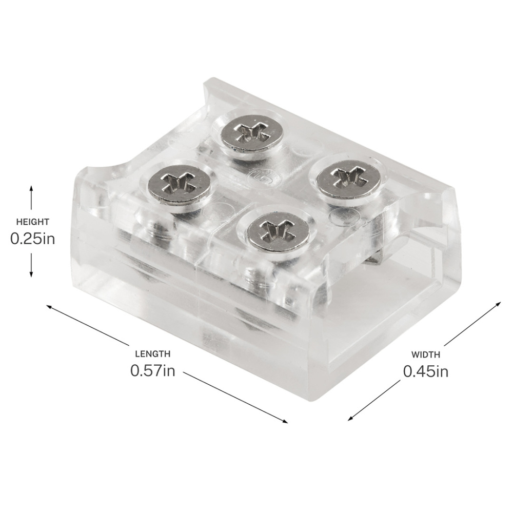 The COB Dry Tape to Tape Terminal Block Connectors is used to connect two pieces of tape light together to continue a run. It's low-profile and versatile style is perfect for under cabinets, covers and shelves.  Ideal for use with the Kichler 6T Series COB Tape Light .