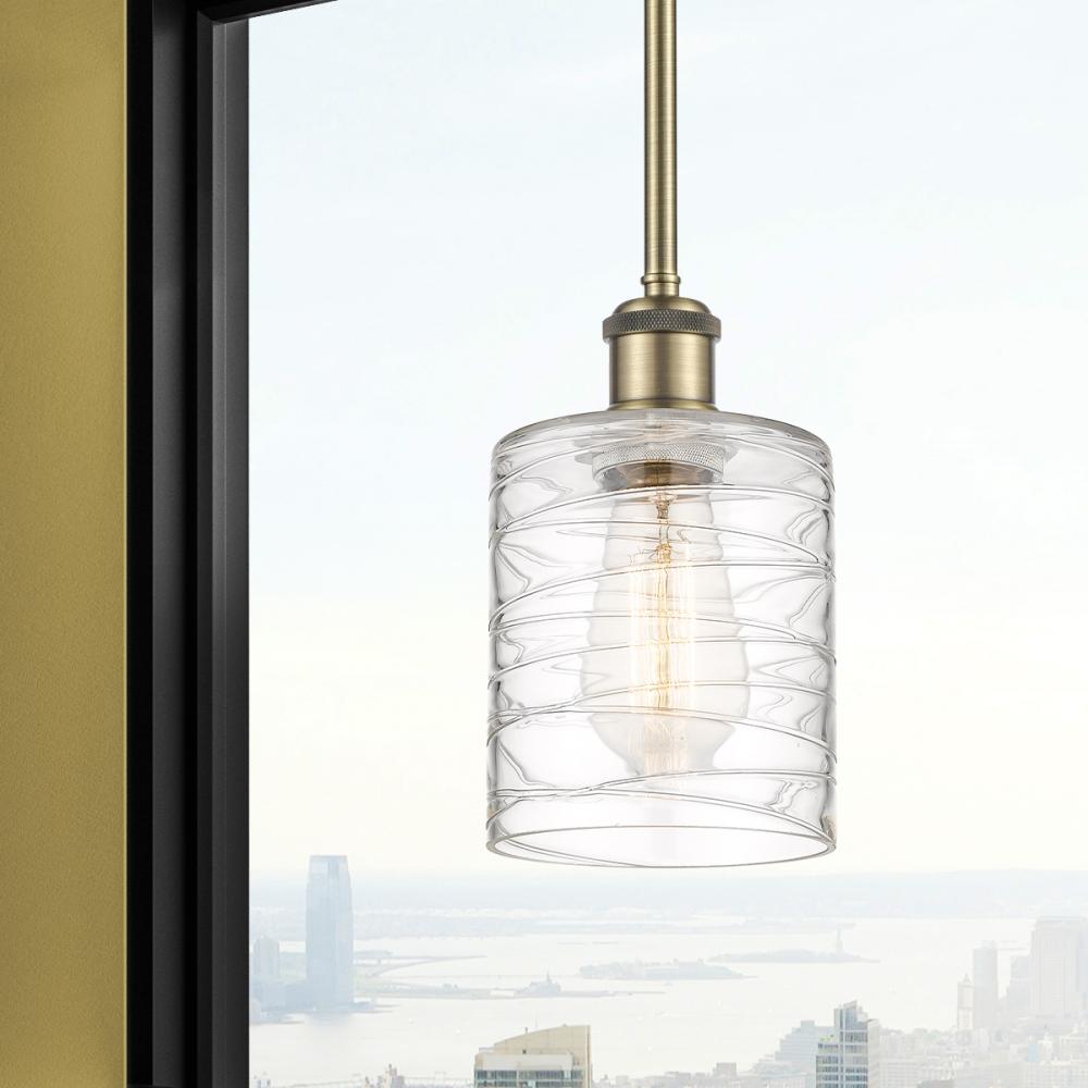 Cobbleskill - 1 Light - 5 inch - Antique Brass - Deco Swirl Shade - Mini Pendant