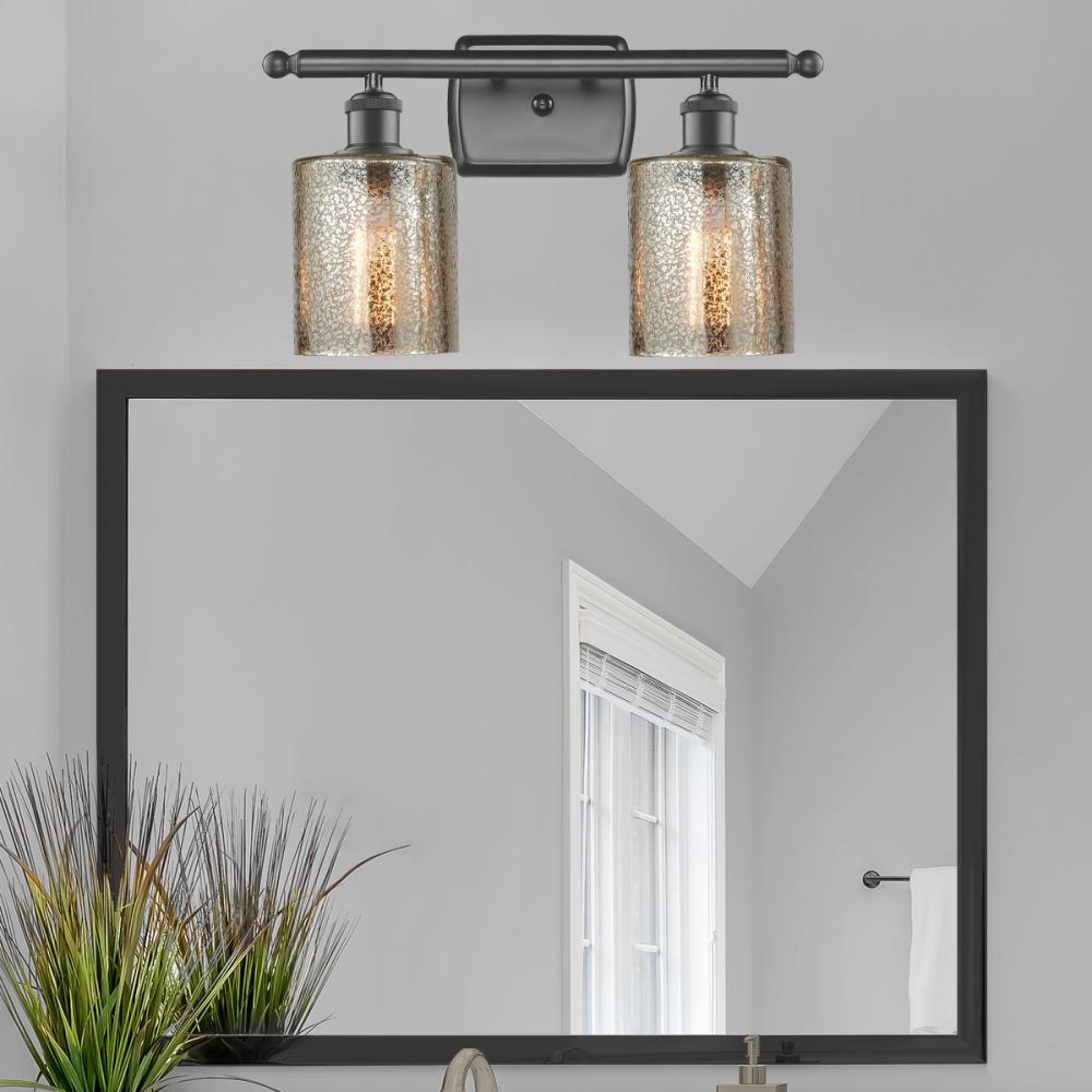 Cobbleskill - 2 Light - 15 inch - Oil Rubbed Bronze - Mercury Shade - Bath Vanity Light