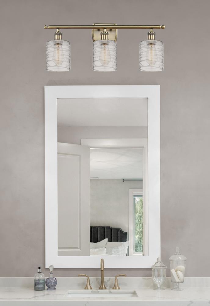 Cobbleskill - 3 Light - 25 inch - Antique Brass - Deco Swirl Shade - Bath Vanity Light