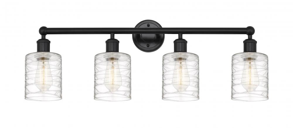 Cobbleskill - 4 Light - 32 inch - Matte Black - Deco Swirl Shade - Bath Vanity Light