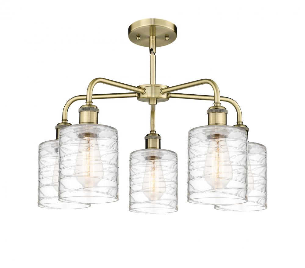 Cobbleskill - 5 Light - 23 inch - Antique Brass - Deco Swirl Shade - Chandelier