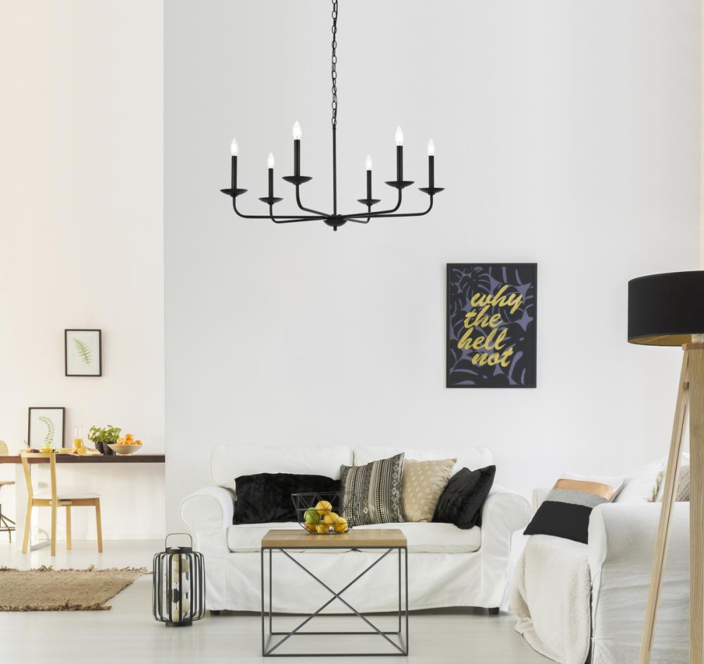 Illuminated by 6 e12 bulbs (light bulbs are not provided)