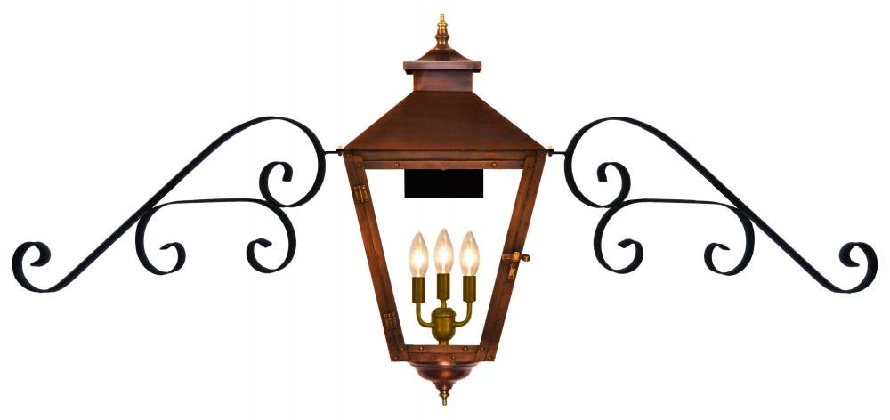 Size 43 Electric Copper Lantern, 3 candelabra base sockets, with Fancy Moustache