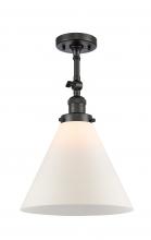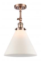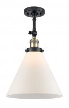 Cone - 1 Light - 12 inch - Antique Brass - Matte White Shade - Adjustable Semi-Flush Mount