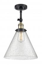Cone - 1 Light - 12 inch - Antique Brass - Adjustable Semi-Flush Mount