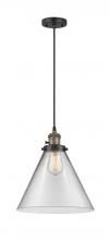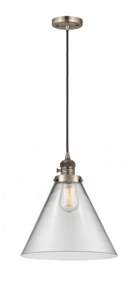 Cone - 1 Light - 12 inch - Antique Brass - Clear Shade - Cord hung - Mini Pendant