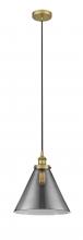 Cone - 1 Light - 12 inch - Antique Brass - Light Smoke Shade - Cord hung - Mini Pendant