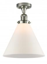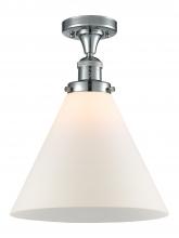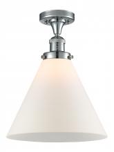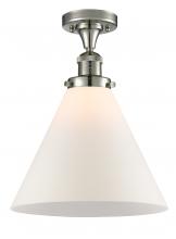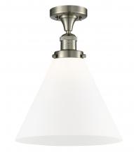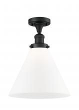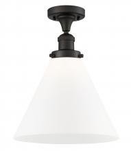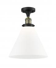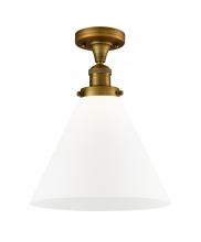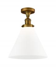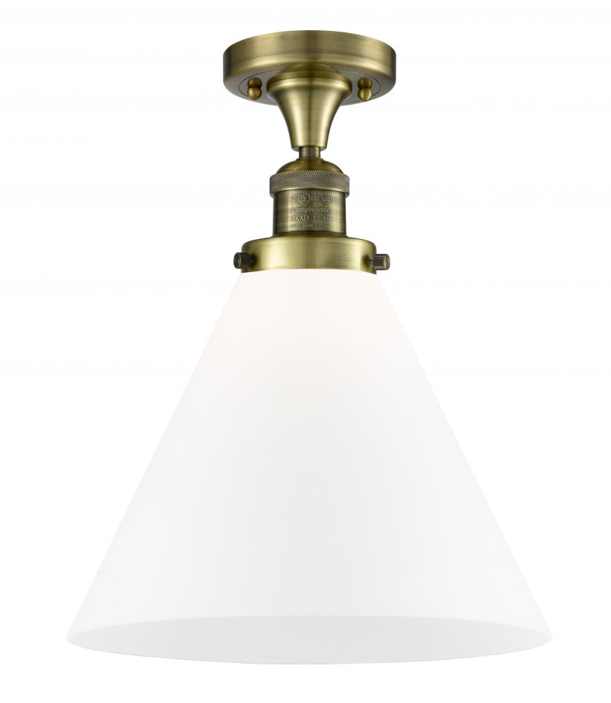 Cone - 1 Light - 12 inch - Antique Brass - Matte White Shade - Semi-Flush Mount