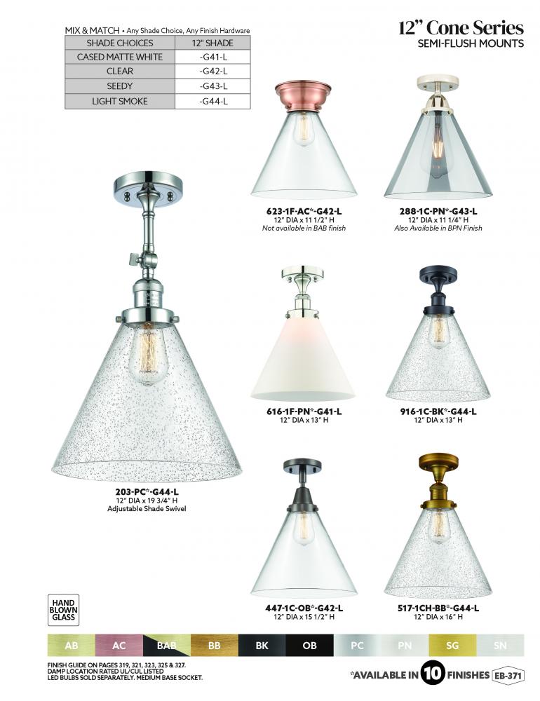 Cone - 1 Light - 12 inch - Antique Brass - Semi-Flush Mount