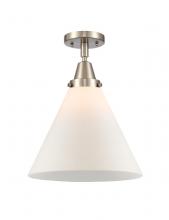 Cone - 1 Light - 12 inch - Antique Brass - Matte White Shade - Semi-Flush Mount