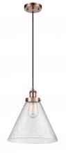 Cone - 1 Light - 12 inch - Antique Copper - Cord hung - Mini Pendant