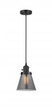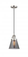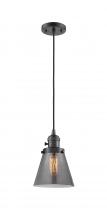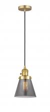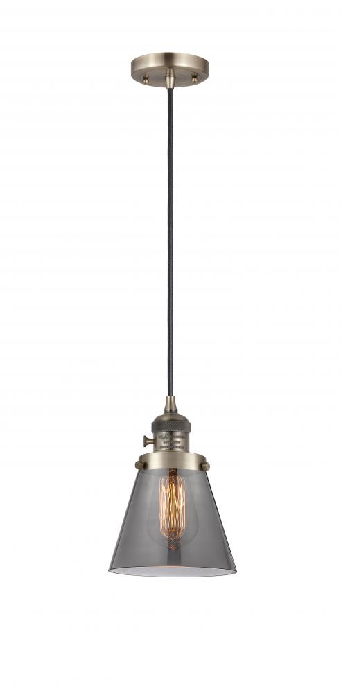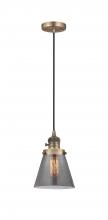 Cone - 1 Light - 6 inch - Antique Brass - Light Smoke Shade - Cord hung - Mini Pendant