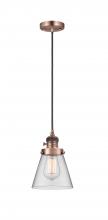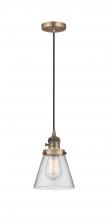Cone - 1 Light - 6 inch - Antique Brass - Cord hung - Mini Pendant