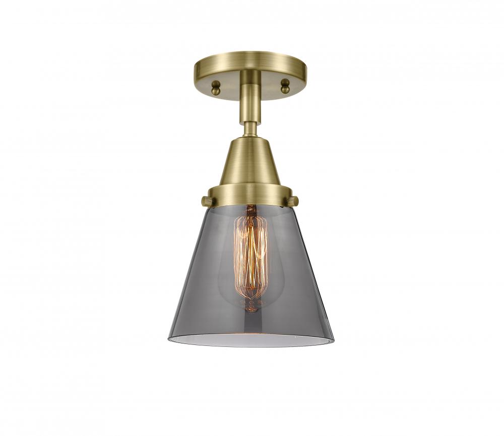 Cone - 1 Light - 6 inch - Antique Brass - Light Smoke Shade - Semi-Flush Mount