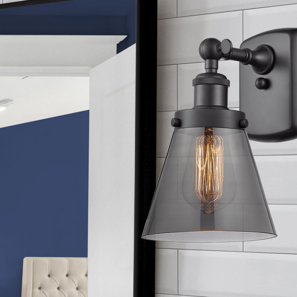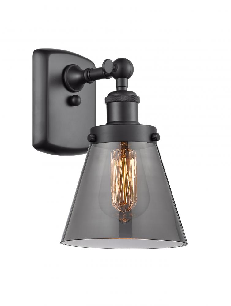 Cone - 1 Light - 6 inch - Matte Black - Light Smoke Shade - Sconce