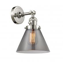 Cone - 1 Light - 8 inch - Antique Brass - Light Smoke Shade - Adjustable Sconce