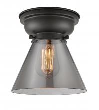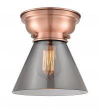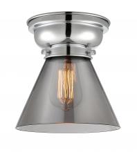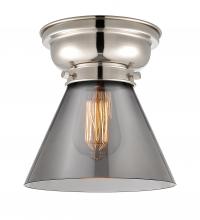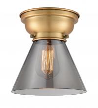 Cone - 1 Light - 8 inch - Antique Brass - Light Smoke Shade - Flush Mount