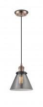 Cone - 1 Light - 8 inch - Antique Copper - Cord hung - Mini Pendant