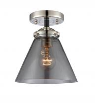 Cone - 1 Light - 8 inch - Black Antique Brass - Light Smoke Shade - Semi-Flush Mount