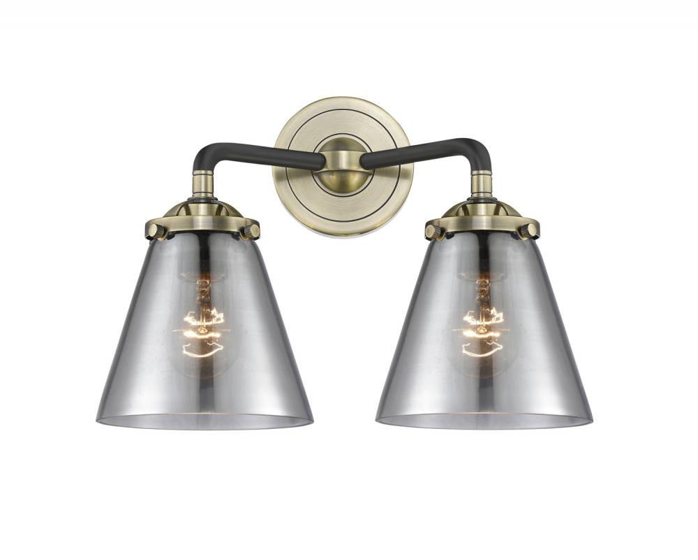 Cone - 2 Light - 14 inch - Black Antique Brass - Light Smoke Shade - Bath Vanity Light