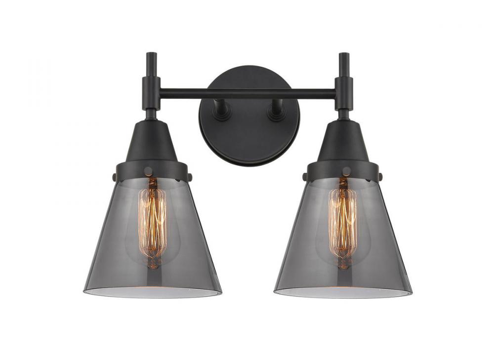 Cone - 2 Light - 15 inch - Matte Black - Light Smoke Shade - Bath Vanity Light