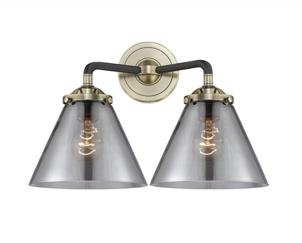 Cone - 2 Light - 16 inch - Black Antique Brass - Light Smoke Shade - Bath Vanity Light