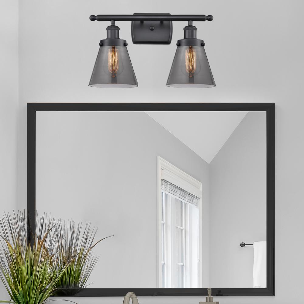 Cone - 2 Light - 16 inch - Matte Black - Light Smoke Shade - Bath Vanity Light