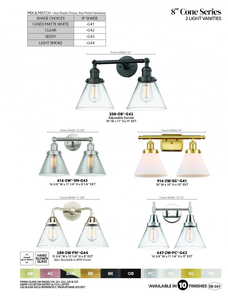 Innovations Lighting 916-2W-WPC-G42 - Cone - 2 Light - 18 inch - White Polished Chrome - Bath Vanity Light