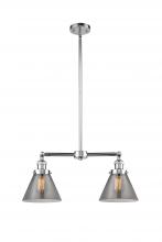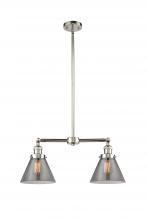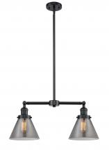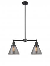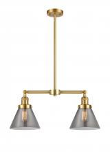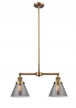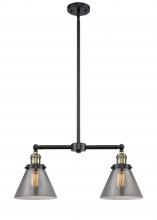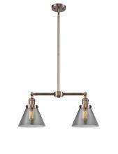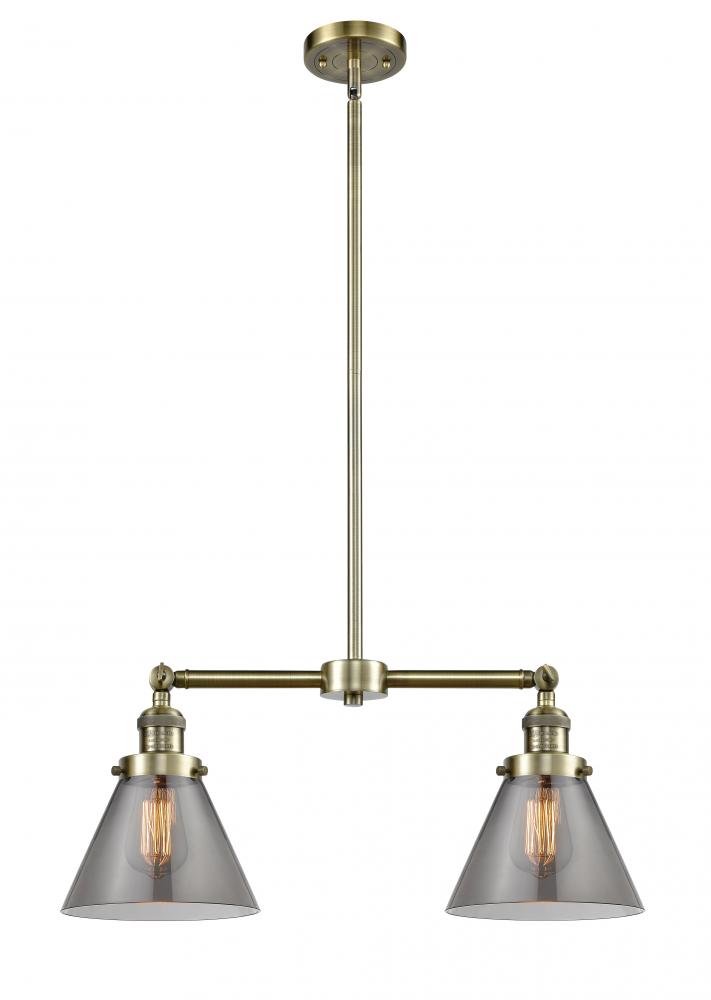 Cone - 2 Light - 21 inch - Antique Brass - Light Smoke Shade - Stem Hung - Adjustable Island Light