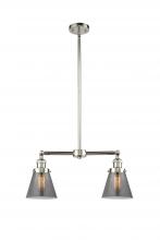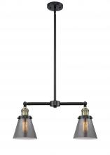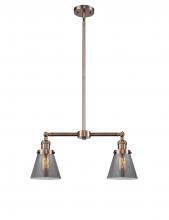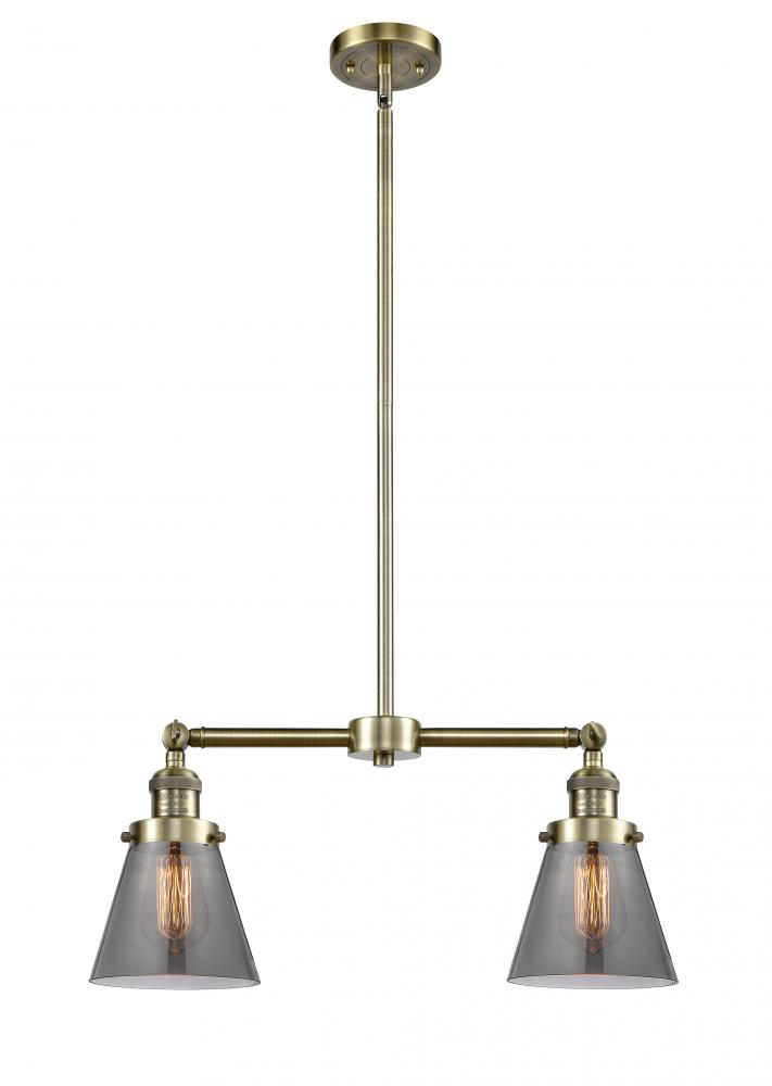 Cone - 2 Light - 21 inch - Antique Brass - Light Smoke Shade - Stem Hung - Adjustable Island Light