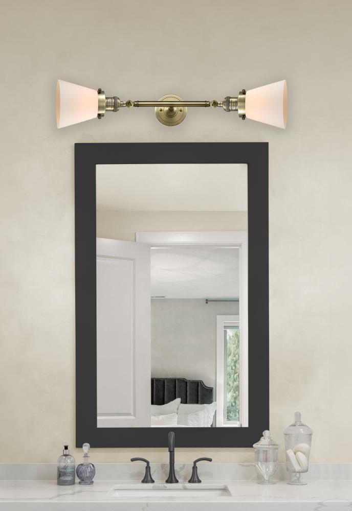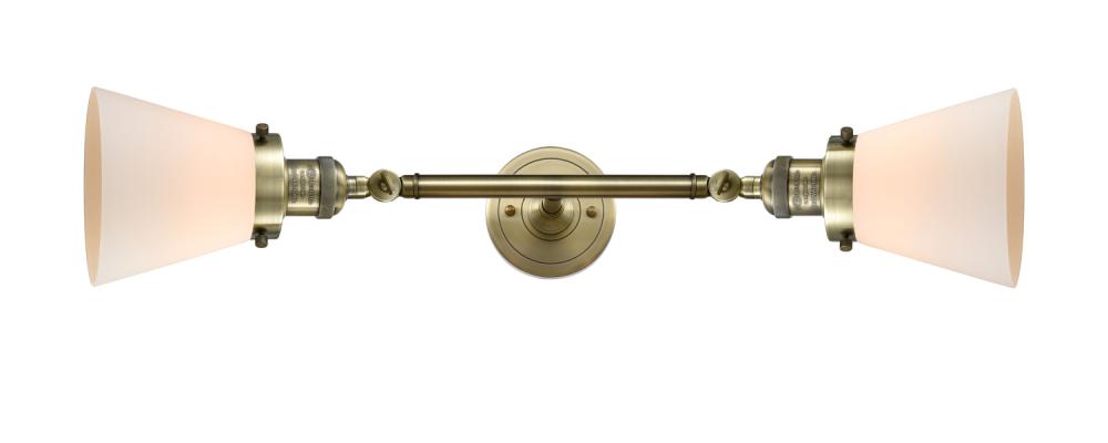Cone - 2 Light - 6 inch - Antique Brass - Matte White Shade - Adjustable Bath Vanity Light