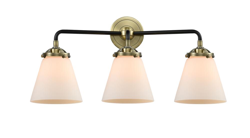 Cone - 3 Light - 24 inch - Black Antique Brass - Matte White Shade - Bath Vanity Light
