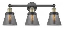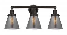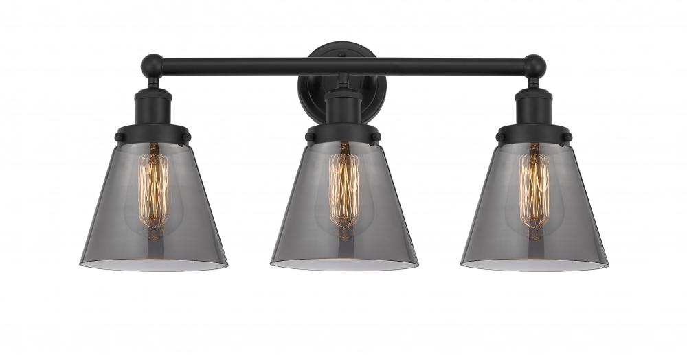 Cone - 3 Light - 24 inch - Matte Black - Light Smoke Shade - Bath Vanity Light