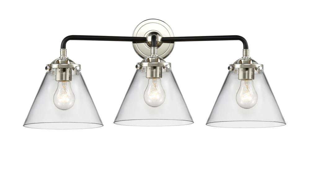 Cone - 3 Light - 26 inch - Black Polished Nickel - Clear Shade - Bath Vanity Light