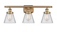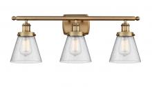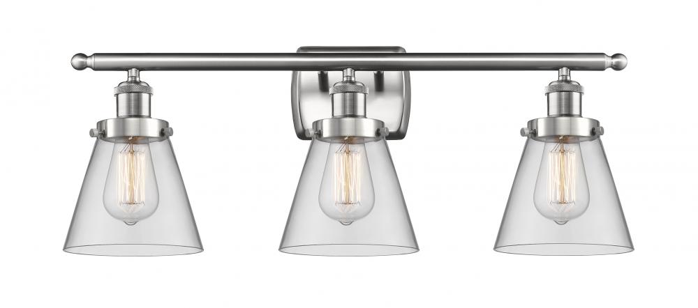 Cone - 3 Light - 26 inch - Brushed Satin Nickel - Clear Shade - Bath Vanity Light