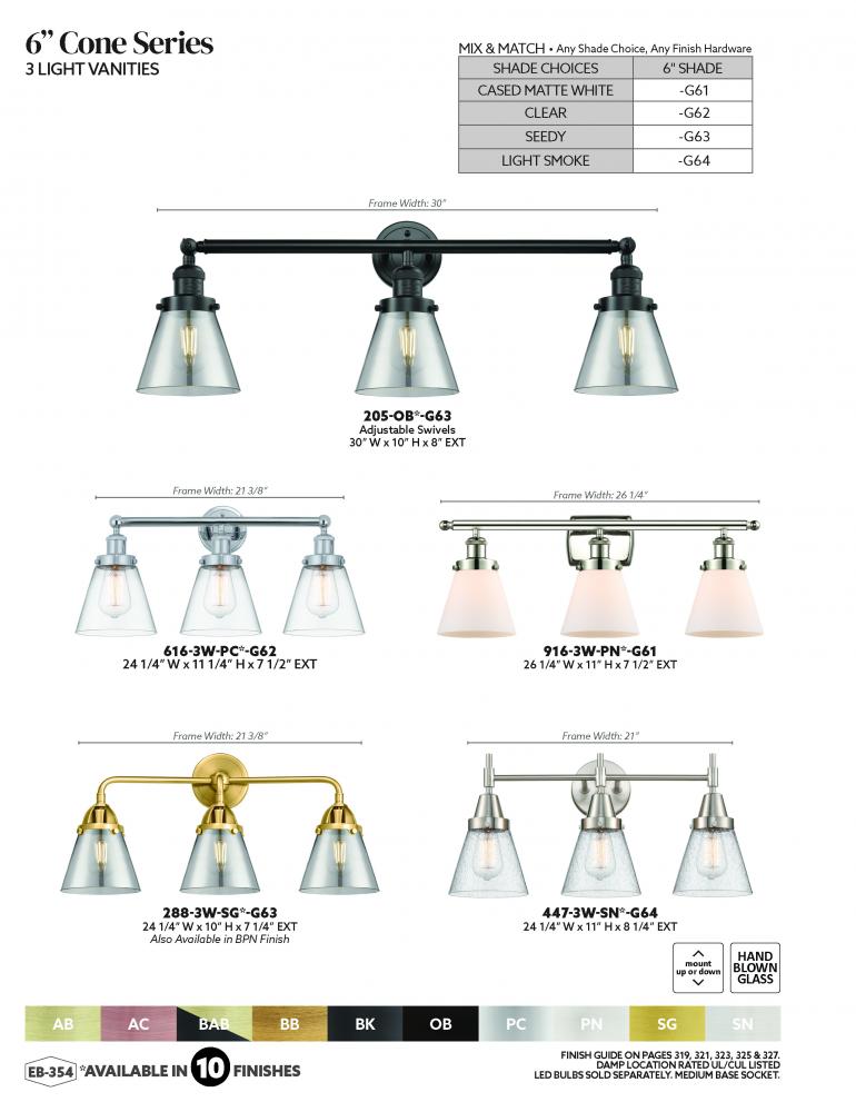 Innovations Lighting 916-3W-SN-G62 - Cone - 3 Light - 26 inch - Brushed Satin Nickel - Bath Vanity Light